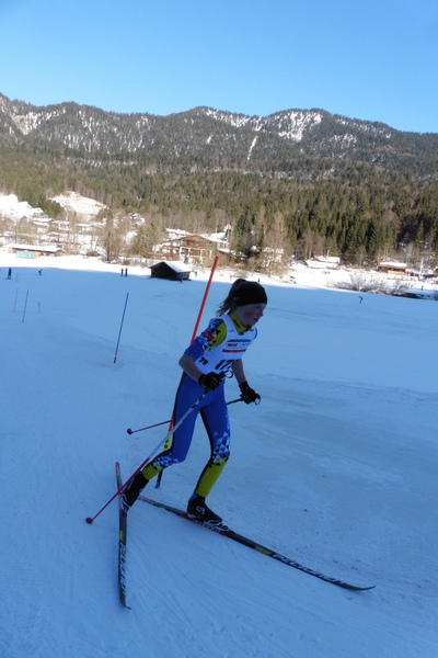 Beim Deutschen Schülercup der Kombinierer in Garmisch-Partenkirchen ging die 9jährige Joanna Eberle an den Start. Mit ihrem Sprung belegte sie den 6.Platz, danach wechselten die jungen Springer/innen die Skier und es ging im nah gelegenen Kaltenbrunn, auf einer 1,25km Runde zum Langlauf, der nach der Gundersen Methode gestartet wurde. Hier gab Joanna mächtig Gas und kam an Ende auf einen sehr guten 4. Platz. Dieser Erfolg ist umso beachtlicher, wenn man bedenkt, dass Joanna erst vor 2 Wochen mit dem Langlauf begann.