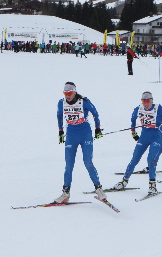 Die Spannung vor dem Finale der Salomon Minitournee im Langlauf ist immer besonders groß, werden hier die letzten Punkte vergeben, die sich dann auch noch auf die Gesamtwertung auswirken. Das in Oberstdorf ausgetragene Skating-Rennen verlangt den jungen Teilnehmern alles ab, wird doch auf einem Teil der Weltcup Strecke gelaufen. Besonders kräftezehrend ist der Burgstall, aber auch verschiedene Technik-Elemente mussten bewältigt werden. Knapp am Podest vorbei lief Johanna Streit S12 auf den 4. Platz. Eva Kling verpasste um 0,4 Sekunden den 4.Rang und kam auf den 5. Platz, was ihr in der Gesamtwertung um einen Punkt einen Pokal kostete. Mit 1,4 Sekunden Rückstand auf Eva lief Ida Eberle durchs Ziel und belegte den 6. Rang. Auch Lea Happ und Paula Schubert (alle S11) konnten mit ihren Leistungen zufrieden sein, sie kamen auf die Ränge 10 und 11. Unter die ersten Zehn liefen auch Nele Händel und Maryella Staiger in der starken Klasse S12 auf die Plätze 6 und 8. In der Gesamtwertung sicherte sich Ida Eberle den 4. Platz, Johanna Streit belegte den 5. Rang, Nele Händel kam auf den 7. und Maryella Staiger auf den 9. Platz. Den 10. und 11. Rang belegten Lea Happ und Paula Schubert in der Klasse S11w.