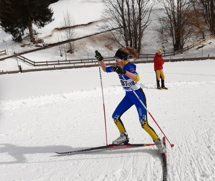 Eine meterdicke Schneedecke, perfekt präparierte Loipen und strahlender Sonnenschein begrüßte die aus ganz Bayern angereisten Langläufer am ersten Wettkampftag. Das Einzelstartrennen begann mit den jüngeren Jahrgängen, die eine kupierte 2,6 km lange Runde laufen mussten. Dabei erreichte Ole Händel nach einem engagierten Rennen einen hervorragenden 12. Rang in seiner Altersklasse der 13-jährigen Schüler.Ebenfalls am Start war hier Florian Einsiedler, der krankheitsbedingt längere Zeit nicht trainieren konnte. Trotzdem lief er in der stark besetzten Gruppe mit 40 Startern auf den 24. Platz. Ab der Altersklasse der 14-jährigen Schüler musste dieselbe Runde zweimal durchlaufen werden. Bei den Mädchen schaffte Lena Einsiedler die 5,2 km in einer sensationellen Zeit, die keine ihrer Konkurrentinnen erreichen konnte. Dies bedeutete nicht nur, dass sie Bayerische Meisterin 2020 wurde, sondern auch, dass sie ihren letztjährigen Titel erfolgreich verteidigt hatte. Bei den 15-jährigen Schülerinnen erkämpfte sich Paula Schubert den 32. Rang. Ein beherztes Rennen lief auch Anna Happ, die in ihrer Altersklasse Bayerische Vizemeisterin wurde.