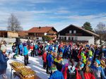 Doch viel Zeit zum Feiern blieb den Sportlern des SC Pfronten nicht, da gleich am nächsten Morgen die Staffelrennen anstanden. Das Wetter zeigte sich wieder von seiner freundlichen Seite und die 1km-Sprintstreckewar von hunderten begeisterten Zuschauern gesäumt. Lautstark feuerten diese die jungen Langläufer an, die sich auf der Strecke heiße Kämpfe um die Plätze lieferten. Die 3er-Staffeln wurden nach der jeweiligen Region und den im Einzelrennen erzielten Leistungen zusammengestellt. Die Pfrontener Jungs kamen mit ihren Staffeln des Allgäuer-Skiverbands (ASV) auf die guten Ränge 7 (Ole Händel) und 9 (Florian Einsiedler). Besonders spannend ging es im Mädchenstaffelrennen zu. Die Startläuferin der ASV-Staffel, Liane Weiß (SV Oberreute), schaffte es den Abstand zu den Führenden gering zu halten. Sie übergab als fünfte an Olivia Biberger (SC Oberstdorf), die zwei Plätze gut machte und ihre Schlussläuferin Lena Einsiedler als dritte ins Rennen schickte. Lena konnte sich nach der Hälfte der Runde an Position zwei setzen und lief noch vor der Zielgeraden auf die führende Konkurrentin auf. Im Zielsprint gelang es der jungen Pfrontenerin dann zu überholen und als erste über die Ziellinie zu fahren. Die drei Allgäuerinnen errangen somit den Sieg und Lena Einsiedler darf sich nun zweifache Bayerische Meisterinim Skilanglauf nennen.